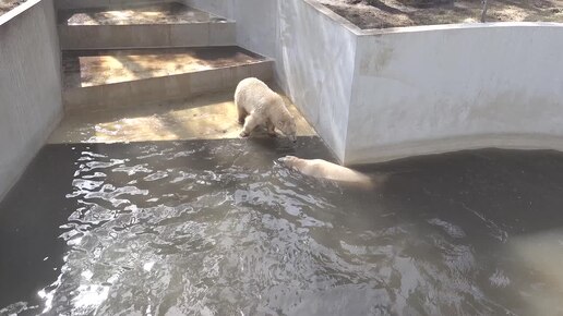 Стрелка плавает в бассейне, а Белку в бассейн не пускает. 12.04.2025