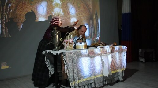 MVI_0040Сцена из "Сказа про Федота - стрельца, молодого удальца" , Л. Филатова. Нянька причесывает царя на свидание с марусей.