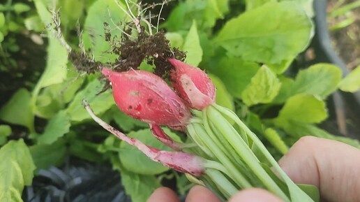 Потеплело 12 апреля. Пора собирать урожай редиса.