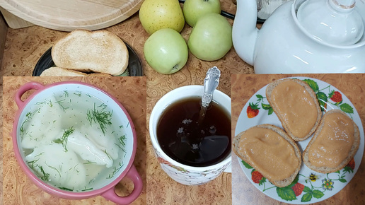 Мой пост, день 41~й. Много чая. Вареники с картошкой. Бутерброды с икрой. Фрукты.