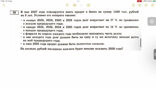 Экономическая задача. Дифференцированный платёж. Запись урока курсов.