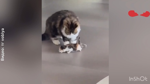 Мама-кошка радуется первым шагам котенка! Это надо видеть!