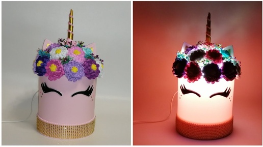 Светильник из изолона.Цветы из фоамирана.Шляпная коробка.Единорог.