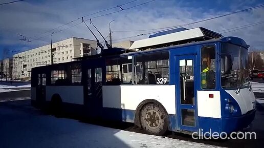 ВЗТМ-5284. (329). Солнечный и праздничный брутальный полёт по Петрозаводску. 1 маршрут. Вид города и вид салона. Вид троллейбуса.
