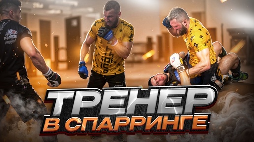 Тренер в спарринге с учениками. ММА формат. 5 раундов по 5 минут.