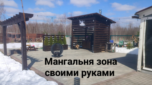 Мангальня зона с зоной отдыха в загородном доме.