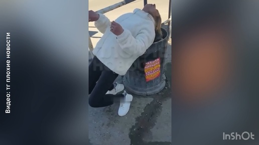 Что творится с миром?! Молодая девушка под чем-то зависла над мусоркой, не понимая, что происходит.