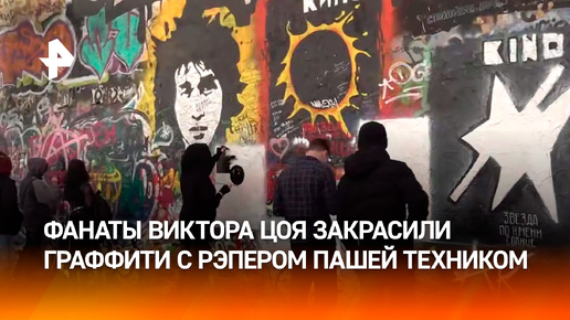 "Он всегда будет легендой": фанаты Виктора Цоя закрасили граффити с рэпером Пашей Техником на Арбате