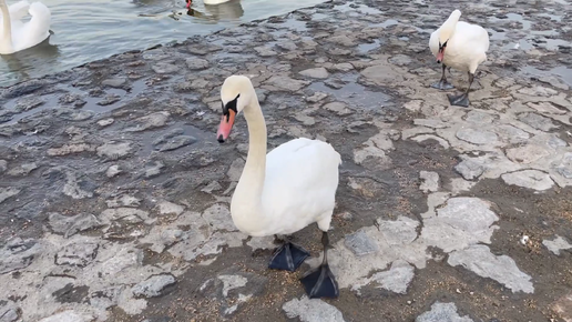 Лебеди и немного уток на набережной Дуная