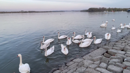Лебеди на набережной Дуная, Земун, Белград, Сербия