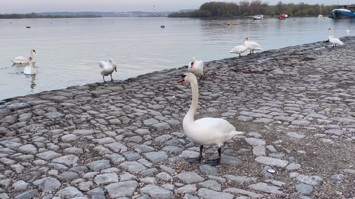 Лебеди на набережной Дуная, Земун, Белград, Сербия