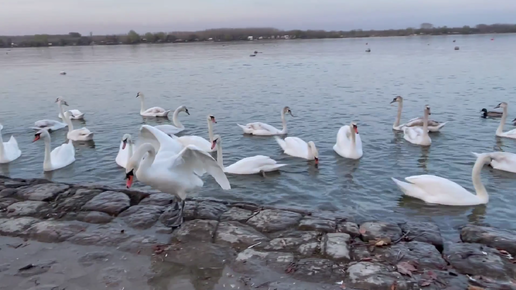 Лебеди и немного уток на набережной Дуная