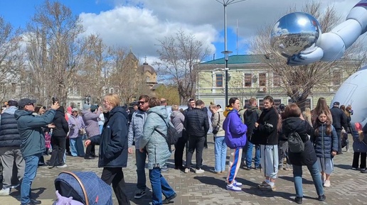 Евпатория 2025. Потеплело и люди вышли на прогулку по набережной Терешковой и площади Фестивальной.
