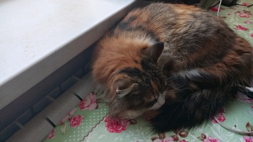 Муся спит после ночной прогулки.