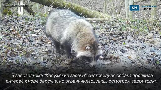 Енотовидная собака разведала нору барсука в «Калужских засеках»