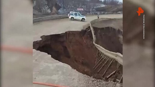 Дорога рухнула в Сахалинской области