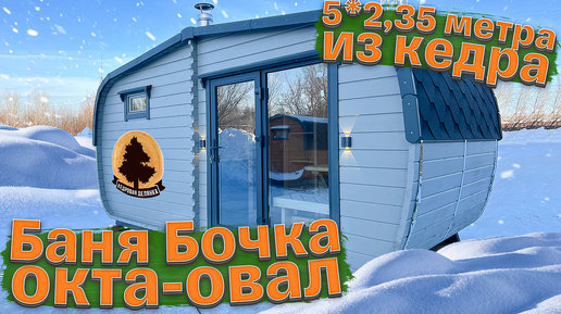 Баня-бочка Овальная-Окта 5*2,35 м из кедра ПВХ входная группа "Кедровая Делянка"