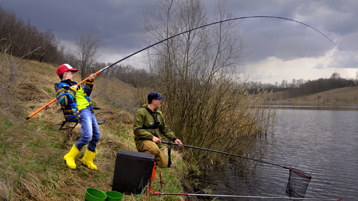 Первый КАРП сына! Рыбалка на поплавок. Ловля карпа весной. Херабуна. Карпфишинг. Рыбалка весной