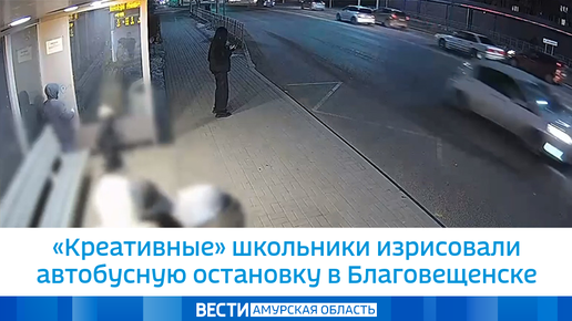 "Креативные" школьники изрисовали автобусную остановку в Благовещенске