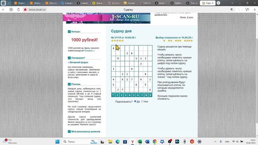 Решение судоку дня (5*) c сайта jscan от 14.04.25