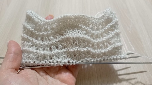 Ажурная планка волнистым узором для вязания носков спицами
