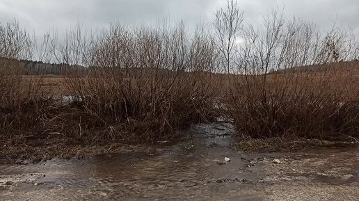 Природа после половодья, размытая переправа. Река Увелка, Челябинская область