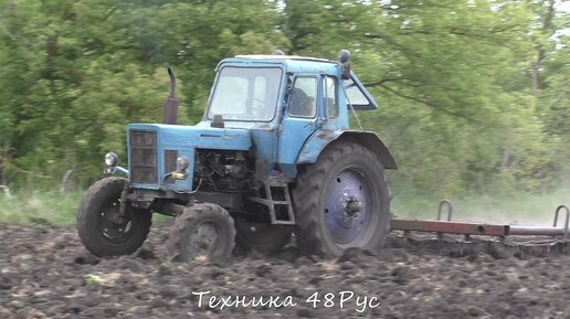 Старенький МТЗ-80 Беларусь с навесным сцепом. Весеннее боронование. Липецкая область