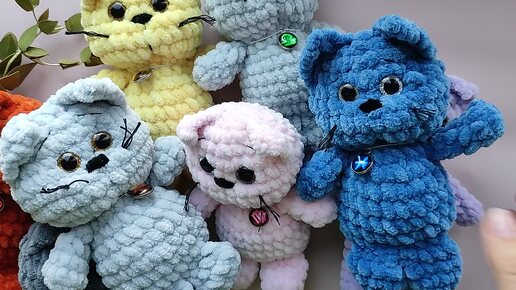 Немного показываю игрушки. Коты-зодиаки и котоКуси в корзинке.