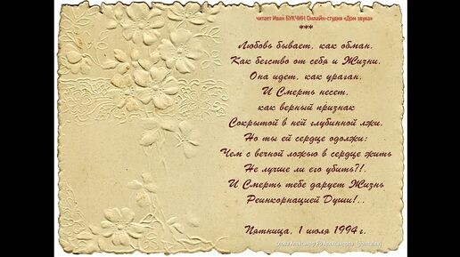 Любовь бывает, как обман читает Иван БУКЧИН Онлайн-студия «Дом звука»