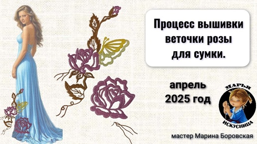 Процесс вышивки веточки розы для сумки от мастера Марины Боровской.