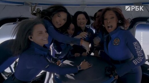 Кэти Перри и женский экипаж Blue Origin парят среди звезд в космосе