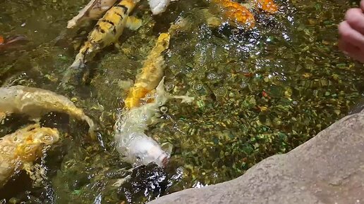 Контактный зоопарк Белый кенгуру Часть 2 кормление рыбок Кои и павлинов