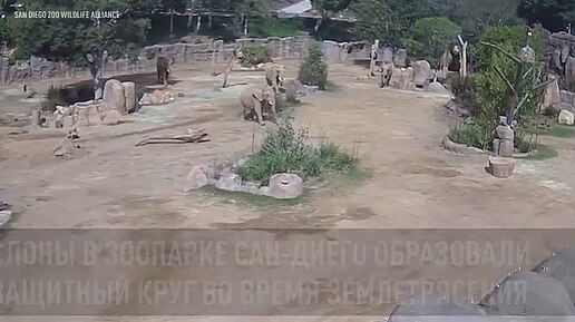 Слоны образовали защитный круг во время землетрясения