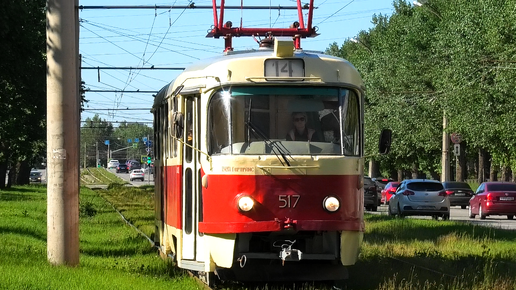 Трамвай Екатеринбурга Tatra T3SU №517 следует по маршруту 14 по проспекту Космонавтов