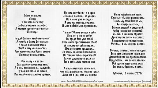 Меня не ищут читает Дарья ПАВЛОВА Онлайн-студия «Дом звука»