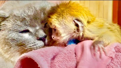 Пока мы с Владом не можем поделить на кого смотрит Финик, кот Басик его фактически принял)))