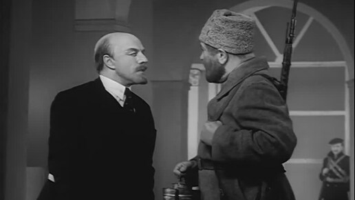 Ленин (Михаил Ульянов) и солдат (Николай Гриценко). Сцена из постановки театра им.Вахтангова