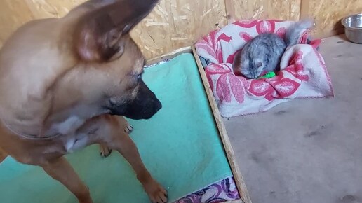 Маленькая собачка и подростающий котенок. Начало дружбы