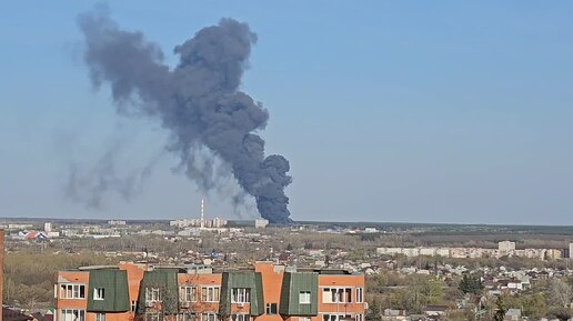 Мощный пожар возле Курского подшипникового завода. Густой серый дым виден из разных районов города.