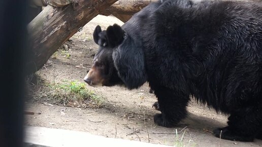 Медведица Челси вышла поздороваться с гостями и пошла дальше, есть зеленую травку.