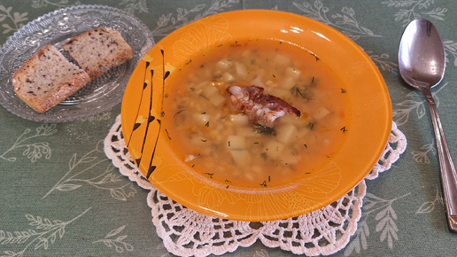Гороховый суп с обжаренным беконом.