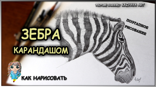 Как нарисовать ЗЕБРУ карандашом. Голова животного. Поэтапное рисование 2021г