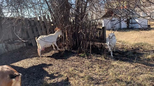 Первая погулка с козами после долгой зимы//