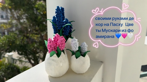 своими руками декор на Пасху. Цветы Мускари из фоамирана💙🩷🤍