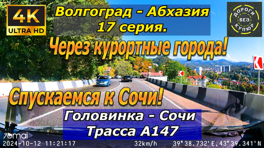 Волгоград-Абхазия. 17 серия. Головинка-Сочи. Трасса А147. Через курортные города!