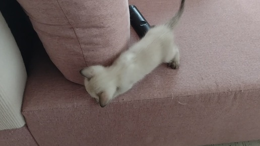 Залезть на диван это котятам просто, а вот слезть сложновато, но они освоят