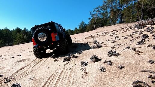 Песчаное трофи на радиоуправляемом Jeep Wrangler JK Rubicon 1/10 на системе Hobbywing Fusion SE.