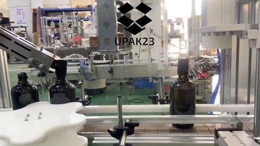 Производственная линия (процесс подачи крышек и укупоривания) розлива