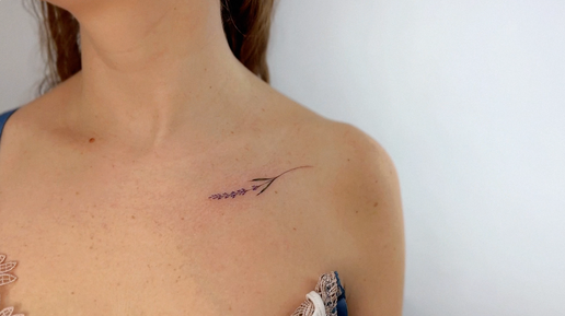 Маленькая тату на ключице для девушки - лаванда. Красивые и стильные татуировки от мастера @kottattoostudio
