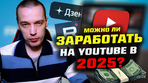 Монетизация в 2025 году или как заработать в Youtube, Rutube и Дзен?